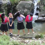 De dag daarvoor begon ook met regen, maar het klaarde toen snel zodat we met D en F een buitengewoon mooie wandeling door de bergen hier hebben kunnen maken naar een volgend dal, en een dorpje daar: Zhonglu. Dit mini dorp is zoals Ping’an, maar dan kleiner en zonder de touristenstroom. Touristen zijn er niet minder welkom; onderweg werden we de weg gewezen, en op den duur begeleid door een aantal dames die ons wel te eten wilden geven daar. Na twee uur waren we daar ook wel aan toe, we werden in een heel oud houten huis genood waar een man op een soort vuurstoofje al aan het koken was, een stukje spek werd van zolder gehaald en onderweg hadden ze al jongen varenscheuten en nog zowat geoogst. D gruwde wat maar uiteindelijk met z’n vieren buitengwoon lekker gegeten. Fen is nog met de dames op de foto geweest -een van de diverse manieren om wat bij te verdienen (voor 10 RMB en dan maken ze hun lange haar voor je los)- . De prachtige tocht weer teruggewandeld waar we J weer troffen die in het hotel lekker had geintergreerd met de zojuist geariveerde belgen. ‘s avonds weer leuk in een plaatselijk restootje op het terras gezeten.