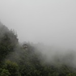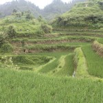 We verlieten Ping’an met regen, veel regen. De nogal instabiele berggrond, de vers aangelegde wegen (het dorp is 14 jaar geleden voor het eerst ontsloten per weg, hoewel dus nog niet geheel) en de regen maakte dat het een spannende rit was: her en der was de berghelling naar beneden gegleden op de weg, daar was wel steeds een stukje vrijgemaakt zodat wij ons er langs konden wurmen. De rivier, woest en oranje van het slib, kwam op bepaalde plaatsen tot aan de weg en de belendende akkers stonden blank.
