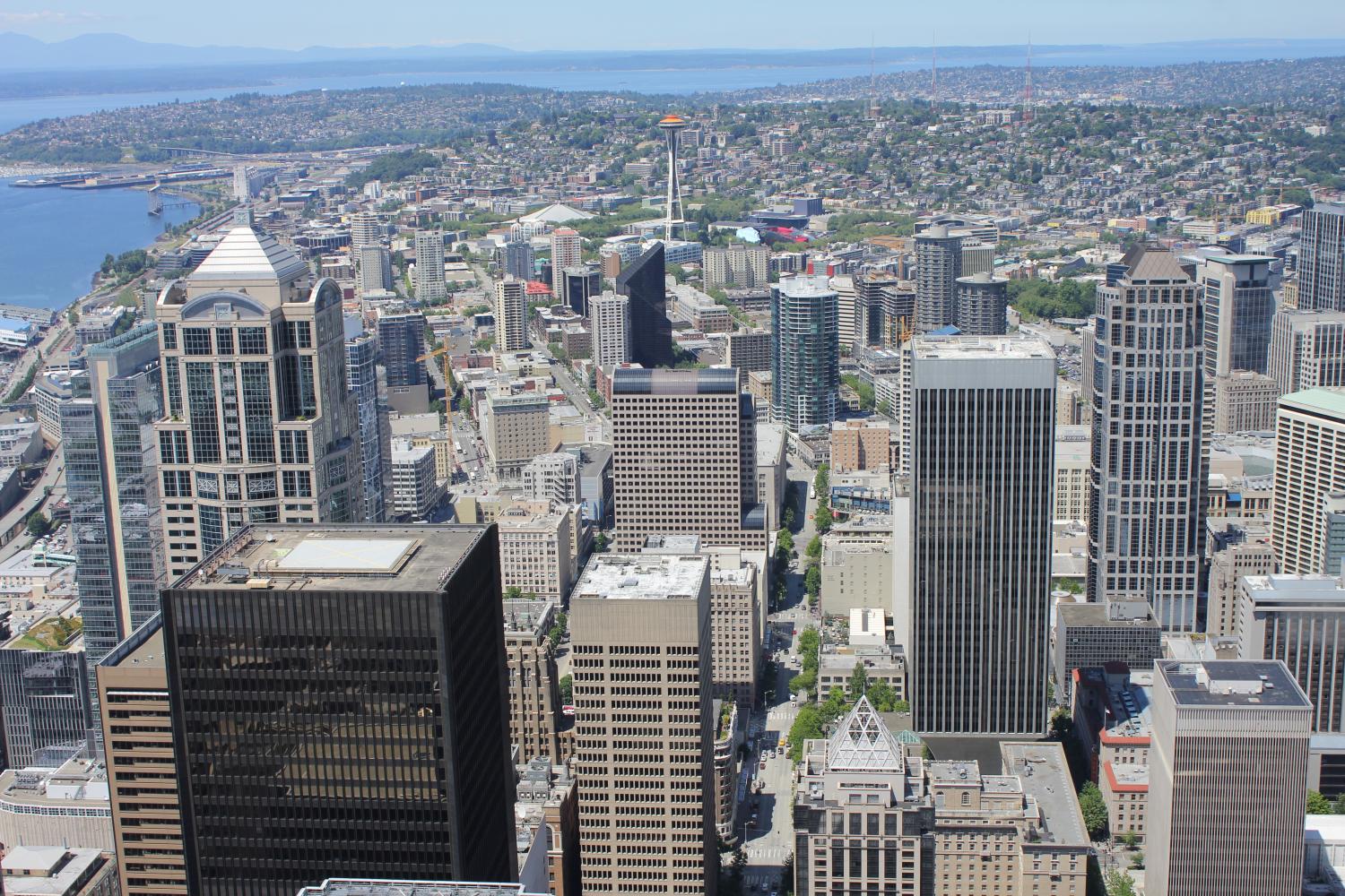 Gisteravond zes uur plaatselijke tijd geland op Seatac, we hadden een reis van 15 uur achter de rug (overstap in Chicago). We hebben ons vervolgens op de been weten te houden tot en met het vuurwerk ter ere van de 4th of July, 22 uur hier, al hebben we uiteindelijk suf vanuit onze hotelkamer gekeken. De plannen waren groots, maar de zoektocht naar een mooi uitkijkpunt ging bepaald slecht samen met onze jetlag.