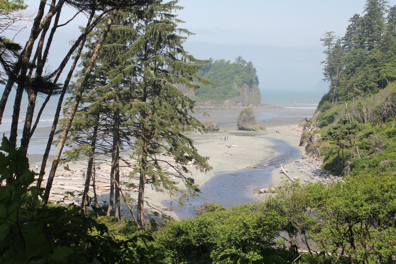 Drie dagen stonden we met onze “mobile home” pal aan het woeste strand van Kalaloch. De eerste morgen hebben de 4 meisjes een eerste strandwandeling gemaakt. Bij eb kun je de rotsen in zee bereiken en die zijn ruim beplakt met schelpen (je hoort ze dichtkleppen als je dichtbij bent), anemonen en zeesterren. Prachtig weer kregen we erbij, met zeewind. Toen Timo was herrezen zijn we in de middag een verzoeknummer van Dautse en Fen gaan uitvoeren: naar Forks. Forks is een buitengewoon onbenullig plaatsje middenin het Olympic National park, en het is de plaats waar de Twilight series en films zich afspelen. Met als gevolg dat er her en der op schijnbaar willekeurige plekken plots toeristen op de foto willen met een huis, auto of ziekenhuis (die dus in de serie voorkomt)? Wij zijn met onze camper door het plaatsje gecrossed en bij elk hoogtepunt stopten we, D&F eruit, foto, terug in de auto, verder. Geweldige ervaring!