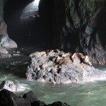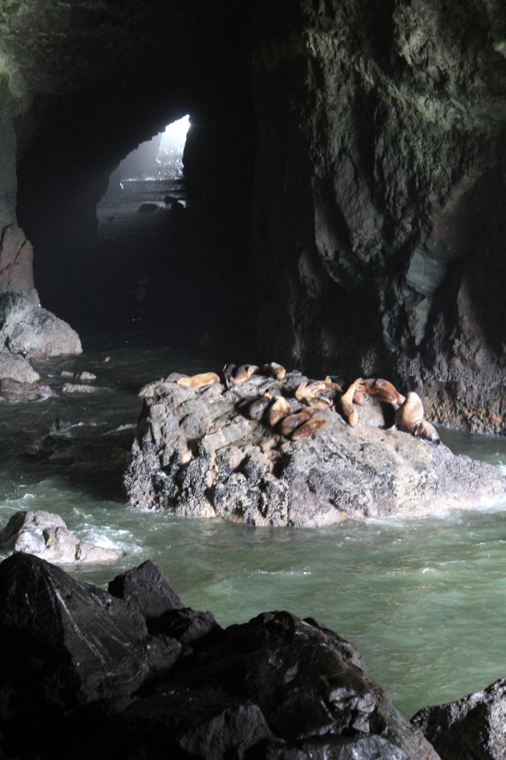 Vandaag weer verder langs de kust naar het zuiden. Highway 101 is soms niet meer dan de A201 tussen Hooddorp en Aalsmeer, maar wel met aanmerkelijk beter uitzicht en wat is Oregon prachtig. Bergen en bos lopen tot pal aan de zee, onderbroken door natuurlijke baaien met een soort schorren, je steekt ze over via oude stalen bruggen die op zichzelf al een bezoek waard zijn. We stopten bij een klif waaronder een kolonie zeeleeuwen huisde, deels in een grot. Bijzonder mooi en als zodanig ook als touristattractie ontdekt, maar de moeite. Vooral het geluid: oerpoerorporp (laag) blijft lang hangen.