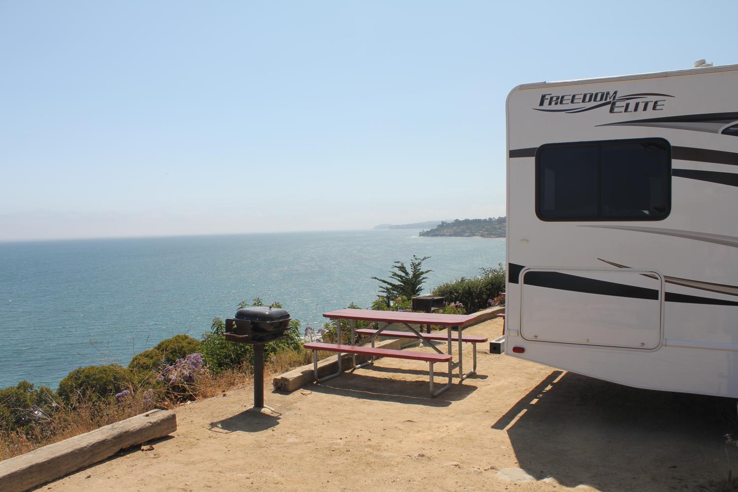 - Camperen op een klif langs de kust bij Malibu.